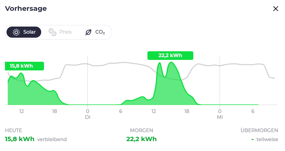 Darstellung der PV-Vorhersage in evcc mit SolarForecast-Daten